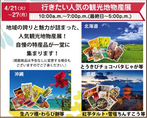 行きたい人気の観光地物産展の商品紹介案内に誤りがございました。