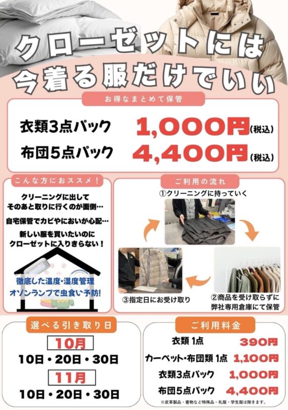 ※保管を受付できない商品もございます、お気軽に店舗までお問い合わせください。