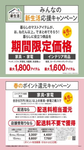 【NITORI】みんなの新生活応援キャンペーン!